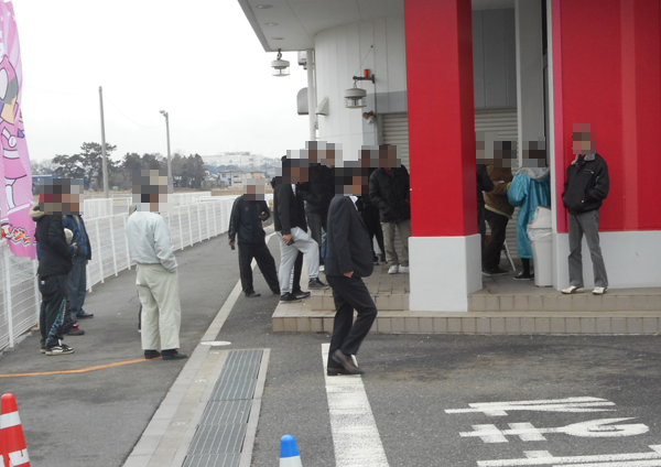 9時半からパチンコ、パチスロそれぞれの入場整理券が配布されており、全部で30人ほどが受け取っていた。