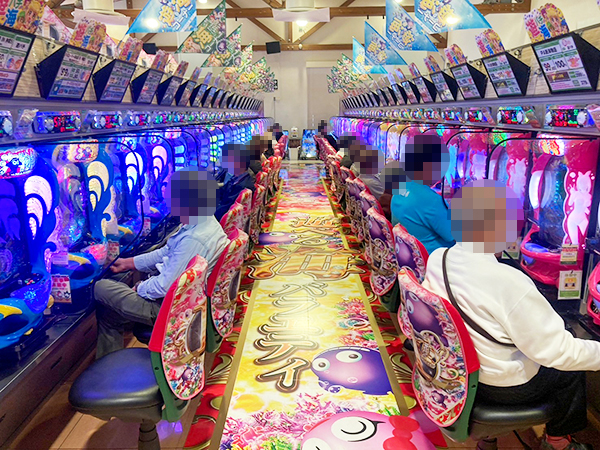 2.222円・0.222円パチンコもそれぞれ高稼働。シマ全体が明るい雰囲気に包まれていた。