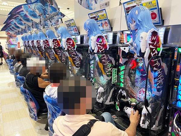 14時ごろの1000円/250玉パチンコを見てみると「ぱちんこ シン・エヴァンゲリオン Type レイ」が高稼働。プレイヤーの嬉しそうな表情を多数確認している。