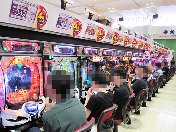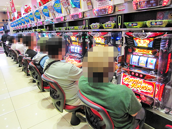 取材時は既に多くのプレイヤーが集結し、パチンコ・パチスロを問わずにぎやかな状況となっていた。