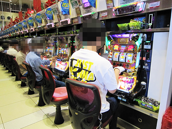500円/89枚パチスロに目を移すと、楽しそうにレバーを叩くプレイヤーの姿が至る所で見られた。