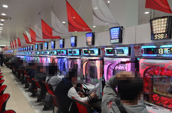 15時頃の4円パチンコでは、「CRスーパー海物語IN沖縄4」と「CR花の慶次X~雲のかなたに~」に機種の性能を引き出しているといった姿を目撃。プレイヤーたちの明るい笑顔も印象に残っている。