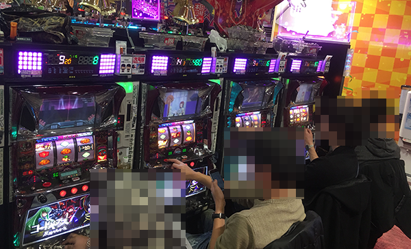 開店直後のパチスロでは、「SLOT魔法少女まどか☆マギカ」や「バジリスク~甲賀忍法帖~絆」などがほぼ満席。