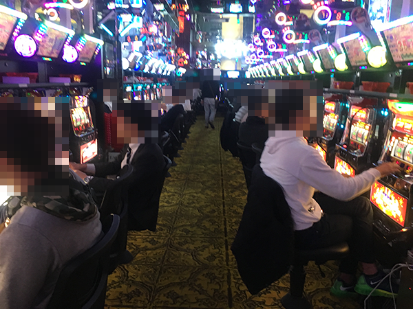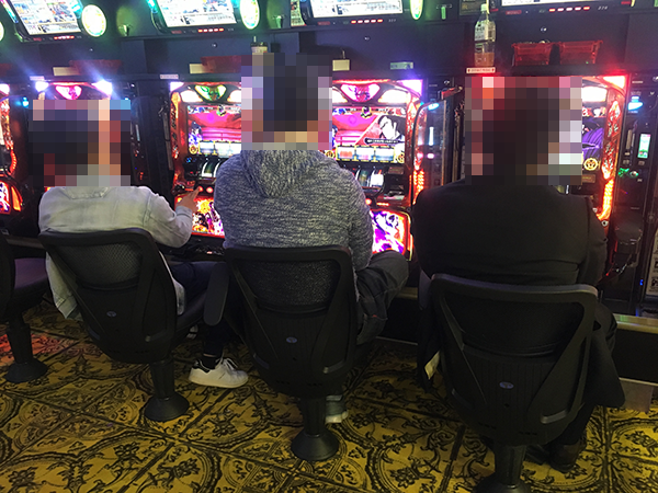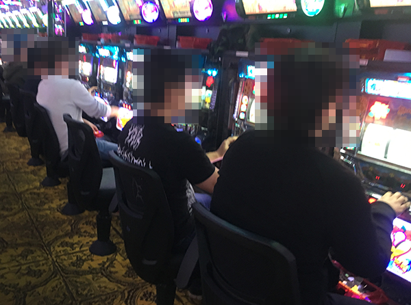 スタッフの明るいあいさつに迎えられつつホール内に入ると、たくさんのプレイヤーが遊技を楽しんでいた。