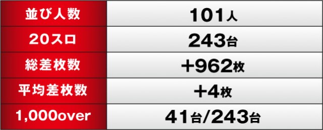 今回は飛びぬけた差枚数の台がなかったというのもあったが、トータル差枚数のほうは+962枚。まさに辛勝という形となったが、これで6月の「英雄のリアル」は4連勝で全勝を保った。