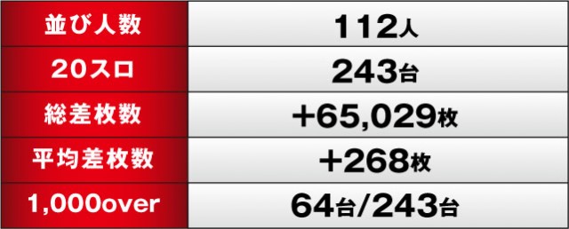 『ビックつばめ小名浜西店』においては6月はこれで5戦目となるが、これまで全て勝利となっていた。そして、今回においてはトータル差枚数+65,029枚でぶっちぎりでの勝利。まさに快勝という形となった。