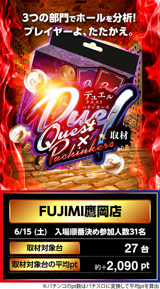 デュエルクエスト×パチンカーズ、ターゲットとなったのは「FUJIMI鷹岡店」。