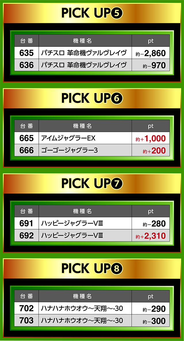 「PICK UP並び」~最新機種が3台連続でプラス!