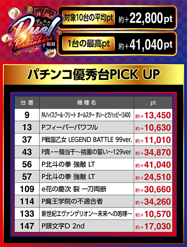 56番台の「P北斗の拳 強敵 LT」が約+41,000ptオーバー!!