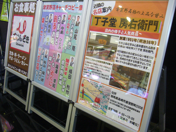 近隣のお店を紹介している看板などもあり、楽しさを得られる工夫を随所にみられた。