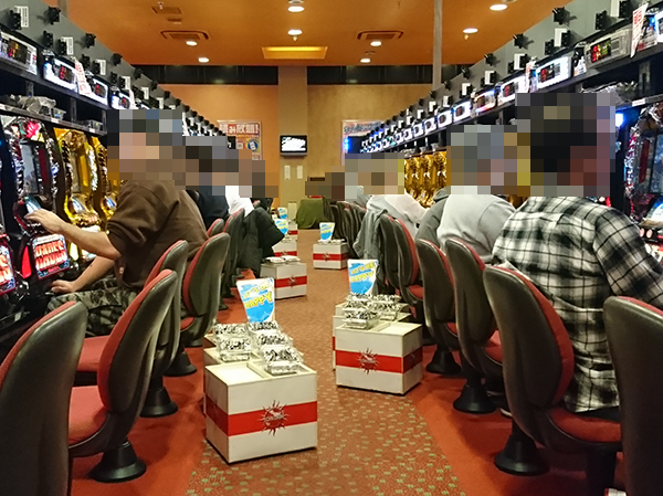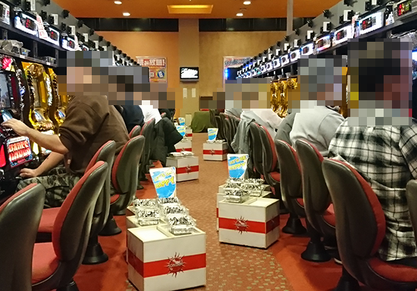 さまざまな機種がにぎわうなかで「ミリオンゴッド-神々の凱旋-」や「アナザーゴッドハーデス-奪われたZEUSver.-」から、もっとも活気が感じられた。