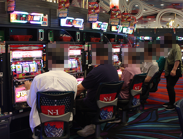 「P大海物語5」や「Pスーパー海物語 IN 沖縄5」が人気を集め、プレイヤーたちがうれしそうに遊技をおこなっていた。