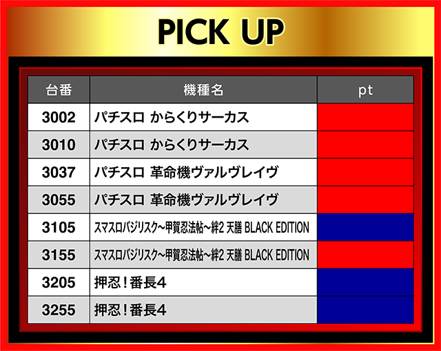 『パチスロ からくりサーカス』も人気があり、結果は3002番台と3010番台がプラス。