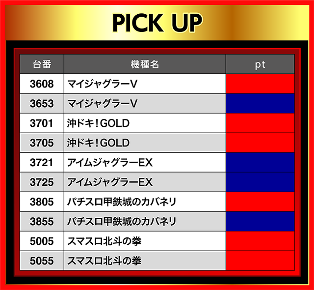 『マイジャグラーⅤ』と『アイムジャグラーEX』から2台ずつをピックアップした。