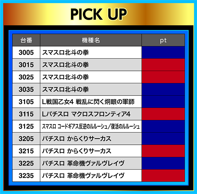 『Lパチスロ マクロスフロンティア4』の3115番台と『パチスロ 革命機ヴァルヴレイヴ』の3235番台も好結果だ。