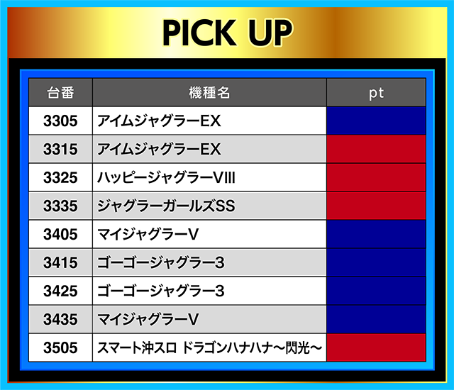 ボーナスタイプも優秀台が多く、『ジャグラーガールズSS』の3335番台などがプラスとなった。