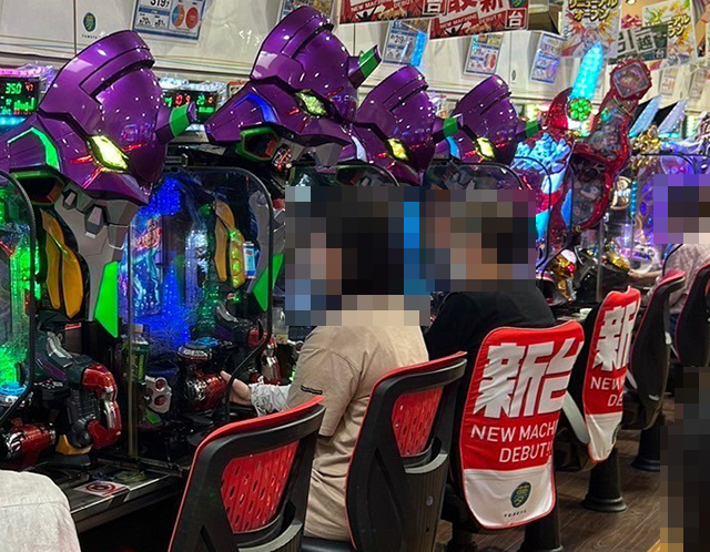 「P新世紀エヴァンゲリオン~未来への咆哮~PREMIUM MODEL」は、設置されている2台がともに稼働しており、どちらのプレイヤーも遊技を満喫している模様。