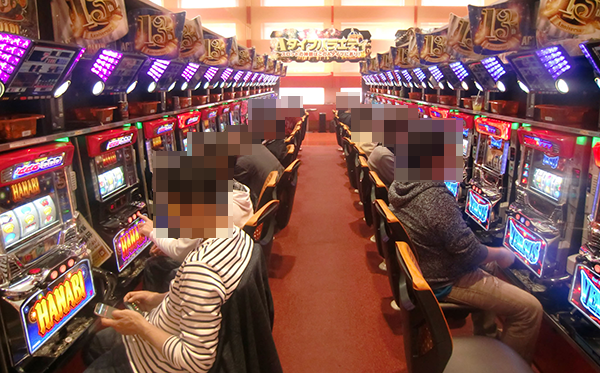 開店してすぐのホール内では、パチスロの「SLOTバジリスク〜甲賀忍法帖〜Ⅲ」と「バジリスク~甲賀忍法帖~絆」が大人気。
