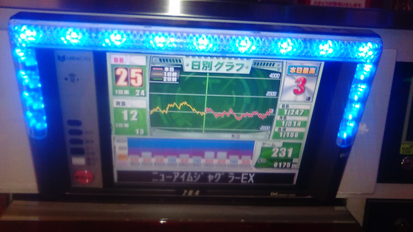 実戦に選んだ場所は、「ニューアイムジャグラーEX」のカド台。大きなメモ帳や飲み物など、準備をバッチリと整えてチャレンジを開始した。