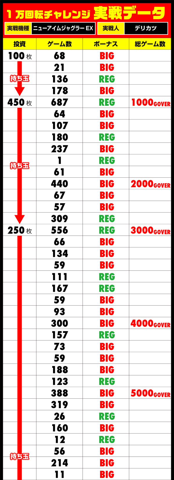 序盤から適度にボーナスを獲得しつつ、順調にゲーム数を伸ばし、1万回転へのペースは良い!