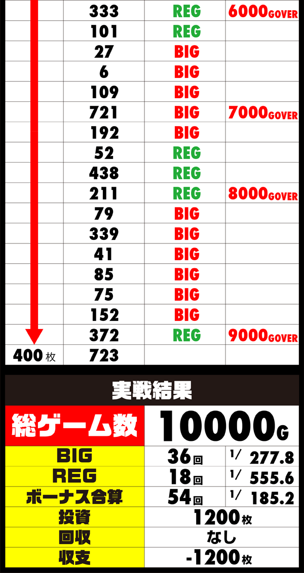 閉店間際には、1000枚弱の持ち玉をすべてノマれてしまったが、1万回転は見事に達成!