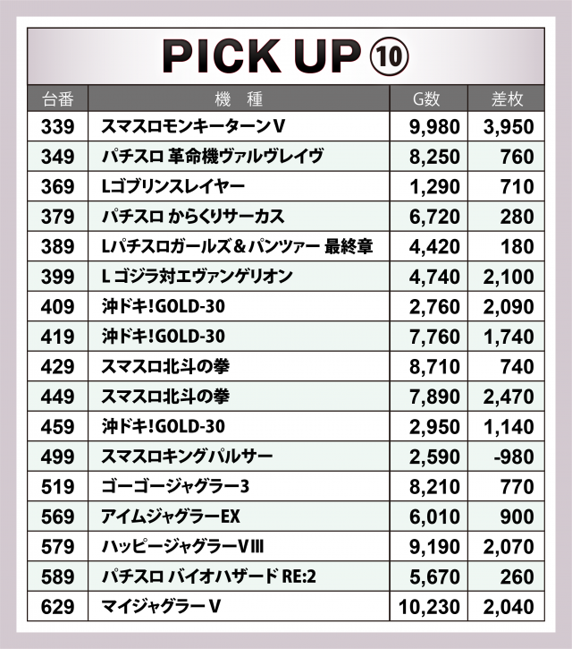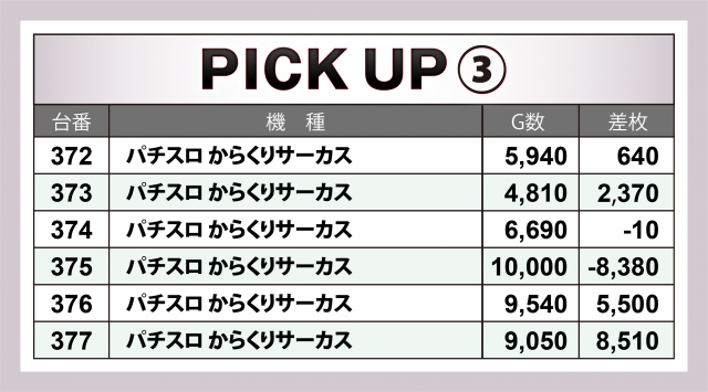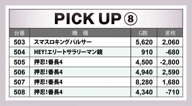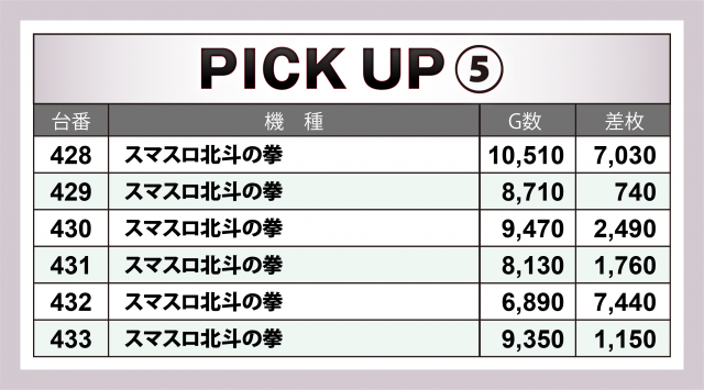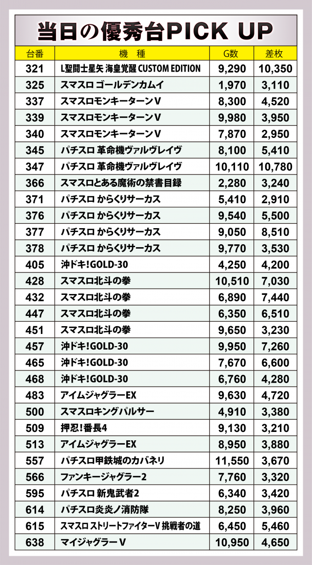 以下、入手した出玉データからこの日の優秀台の詳細をクローズアップしていこう。