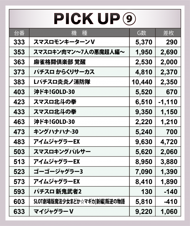 また『沖ドキ!GOLD-30』『スマスロ北斗の拳』では+7千枚オーバーが続出し、盛況を誇った。