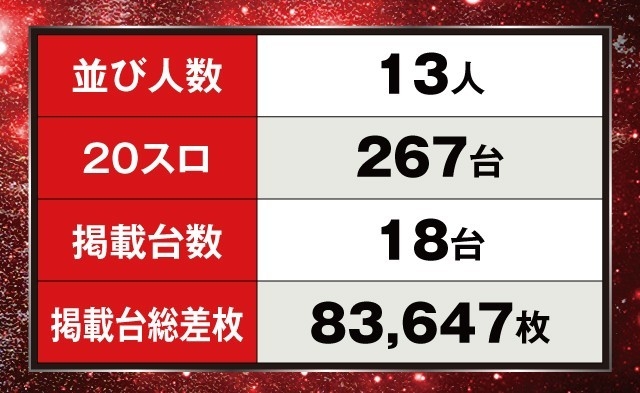 18台中11台が+3,000枚超となっただけに、対象台の平均差枚は驚異の+4,647枚!!ファンも大満足だったに違いないだろう。