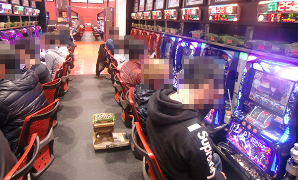 14時を過ぎた頃のパチスロにおいて、とくに盛り上がっていたのは「バジリスク~甲賀忍法帖~絆」と「SLOTバジリスク〜甲賀忍法帖〜Ⅲ」。目をひくようなパフォーマンスを披露しているプレイヤーが多く、華やかなシーンも確認できた。