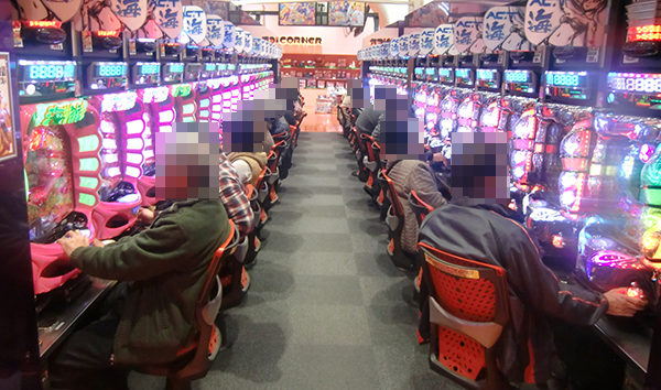 開店時から人気のあった「CR花の慶次X~雲のかなたに~」と「CR牙狼 魔戒ノ花」にも、ポテンシャルを発揮できているといった姿が多数。