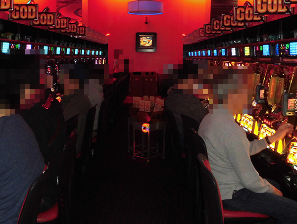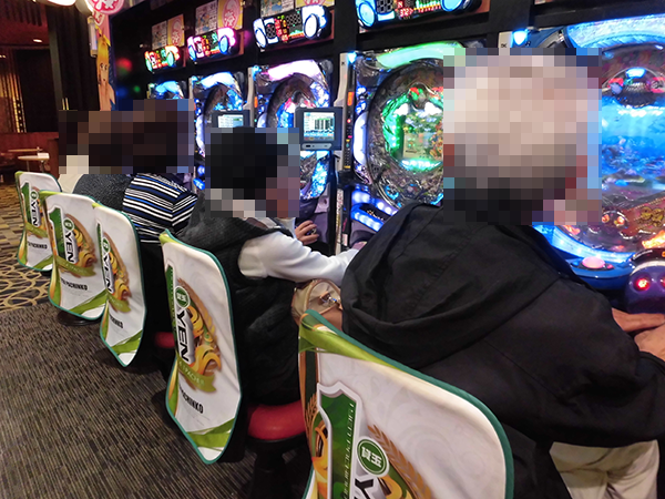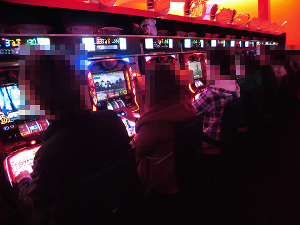 16時頃のパチスロでは朝イチに引き続き、「バジリスク~甲賀忍法帖~絆」と「パチスロ北斗の拳 修羅の国篇」が盛況。機種のポテンシャルを上手く引き出しているようなプレイヤーが多く、ひときわにぎやかな雰囲気が感じられた。