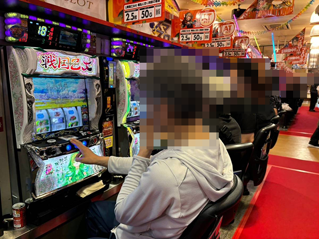 16時頃のパチスロでは、「L戦国乙女4 戦乱に閃く炯眼の軍師」が満席となっており、シマ内は笑顔で彩られていた。