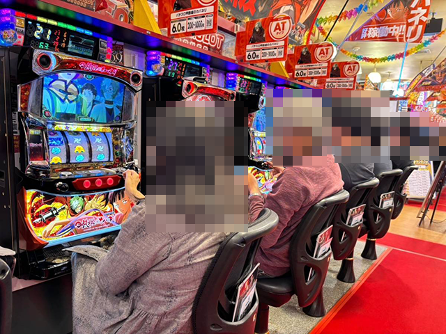 「パチスロ からくりサーカス」や「スマスロ北斗の拳」などの稼働率も高く、活気も大きい。