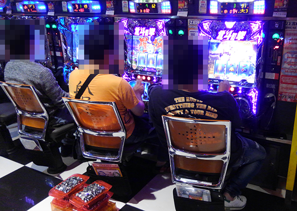14時を過ぎた頃の20円パチスロにおいて、とくに活気づいていたのは「バジリスク~甲賀忍法帖~絆」。目をひくようなパフォーマンスを披露しているプレイヤーが多く、抜群の存在感を放っていた。