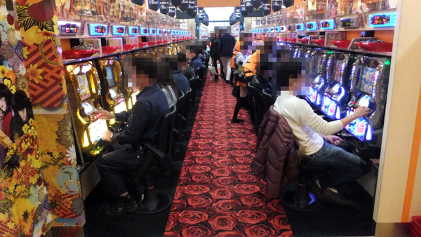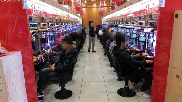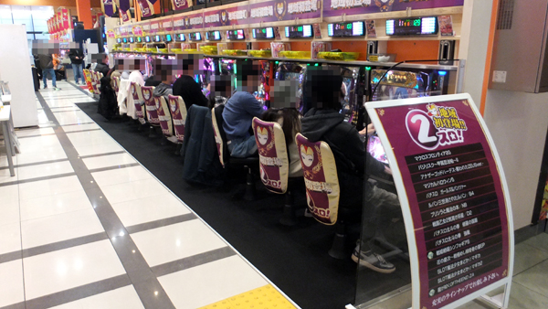 取材当日は、新台入替のため普段より並びが多く、オープン後は20円パチスロではAT機、4円パチンコでは人気タイアップ機種を中心に満席近い状況となった。