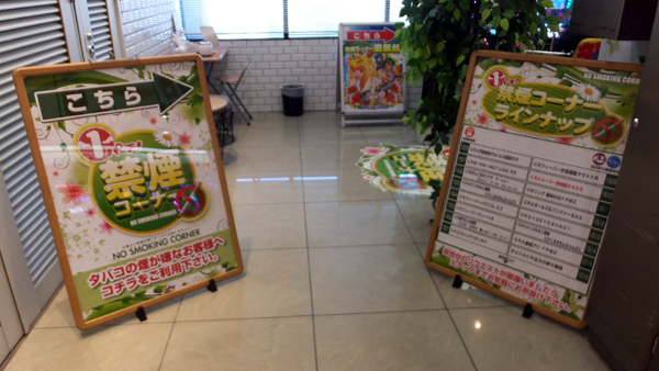 1円パチンココーナーには禁煙コーナー設置。空気清浄器2台、多種の消臭剤が準備されておりサービスは充実。トイレやレストスペースも清潔に保たれていた。