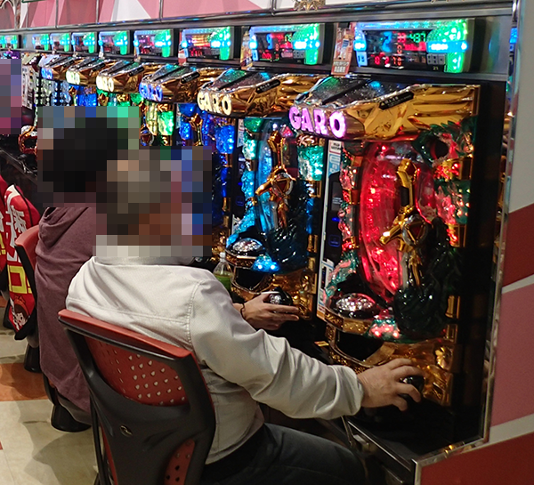 午後のパチンコでは、「CR牙狼 魔戒ノ花」に活躍をしているプレイヤーを目撃。表情は明るく、心から楽しめているようにみえた。