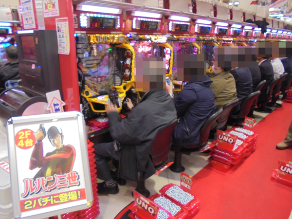 1000円/240玉パチンコで人気を集めていたのは「CRルパン三世~Lupin The End~」「CR牙狼闇を照らす者」の2機種。両機種ともに空台はほとんど見られず、シマに入ると熱気が伝わってきた。
