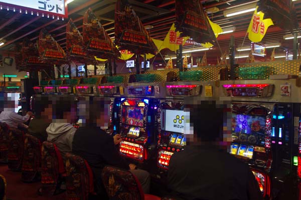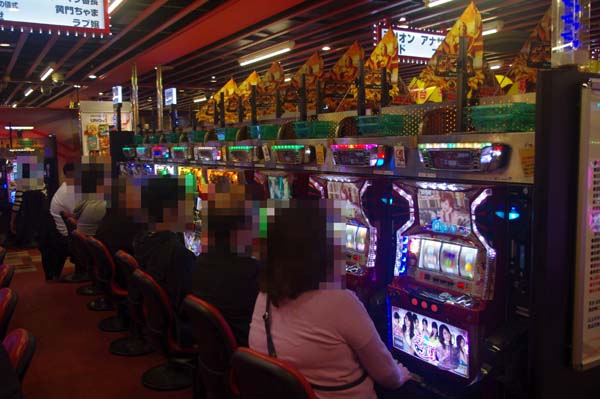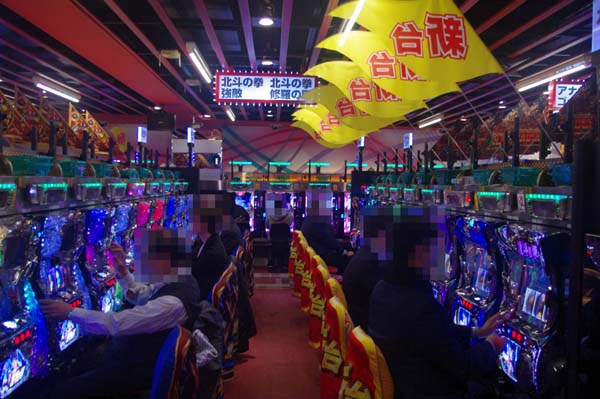 1000円/48枚スロットでの人気は「パチスロ北斗の拳 修羅の国篇」。活躍するプレイヤーも見られ、シマ全体が明るい雰囲気に包まれていた。