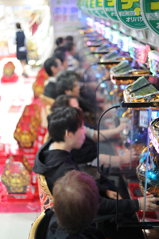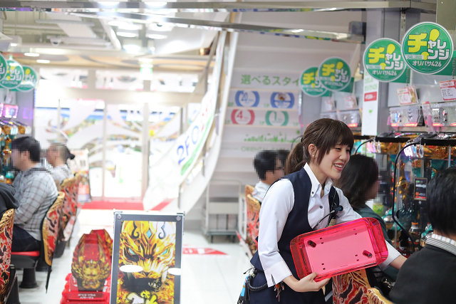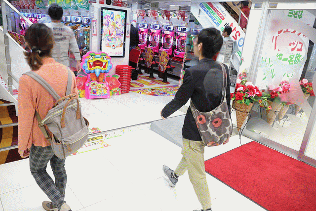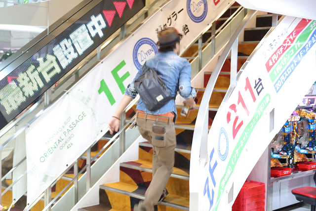 直進しそのままパチンコへ向かうファン、対して2階のパチスロへと階段を軽快に駆け上がるファン。