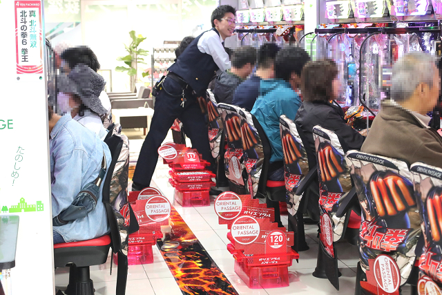 あっという間に、1Fは10月導入したばかりのパチンコの新台や併設するノーマルAタイプのパチスロ席が埋まり始める!!