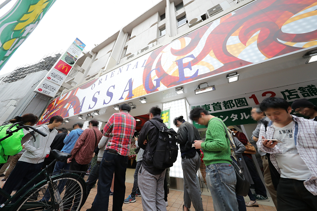 10時の開店とともに、店内に入店するファン。