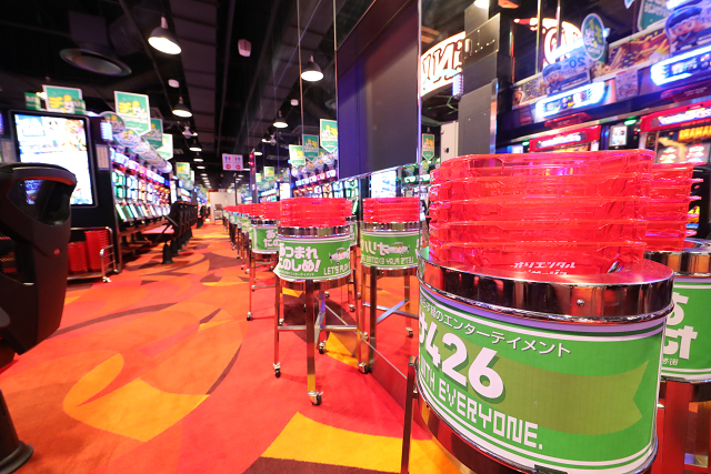 白基調のタイル張りの床に、アクセントで観葉植物が鎮座、そして数百種類のアイテムを取りそろえる賞品カウンターも健在だ。