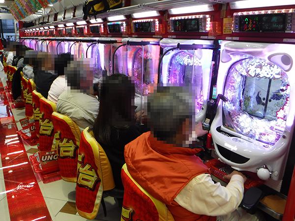 また、人気機種の「CRルパン三世~Lupin The End~」や「ぱちんこCRモンスターハンター4」もにぎわいを見せており、華やかな光景が広がっていた。