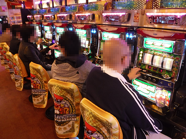 「ゲッタ―マウス」や「ハナビ」、ジャグラーシリーズなどボーナスタイプも人気。理想的ともいえる展開で遊技を楽しむプレイヤーも多く、明るい表情からは満足感を得ていることが伝わってきた。