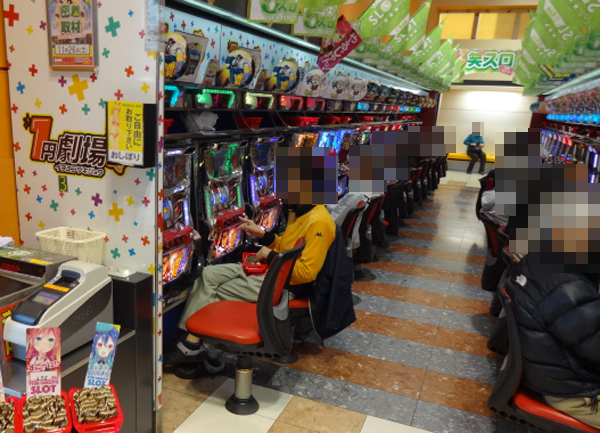 パチスロコーナーにおいても定番機種が人気を集めており、ジャグラーシリーズがほぼフル稼動。