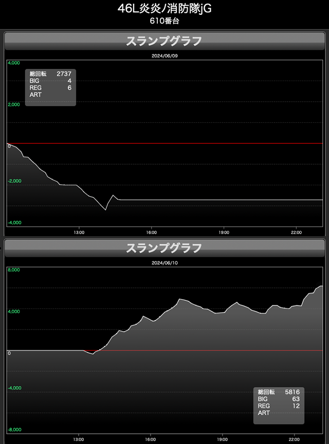 本日のアッパーカットにも登場した610番台の『パチスロ炎炎ノ消防隊』が6,144pt!