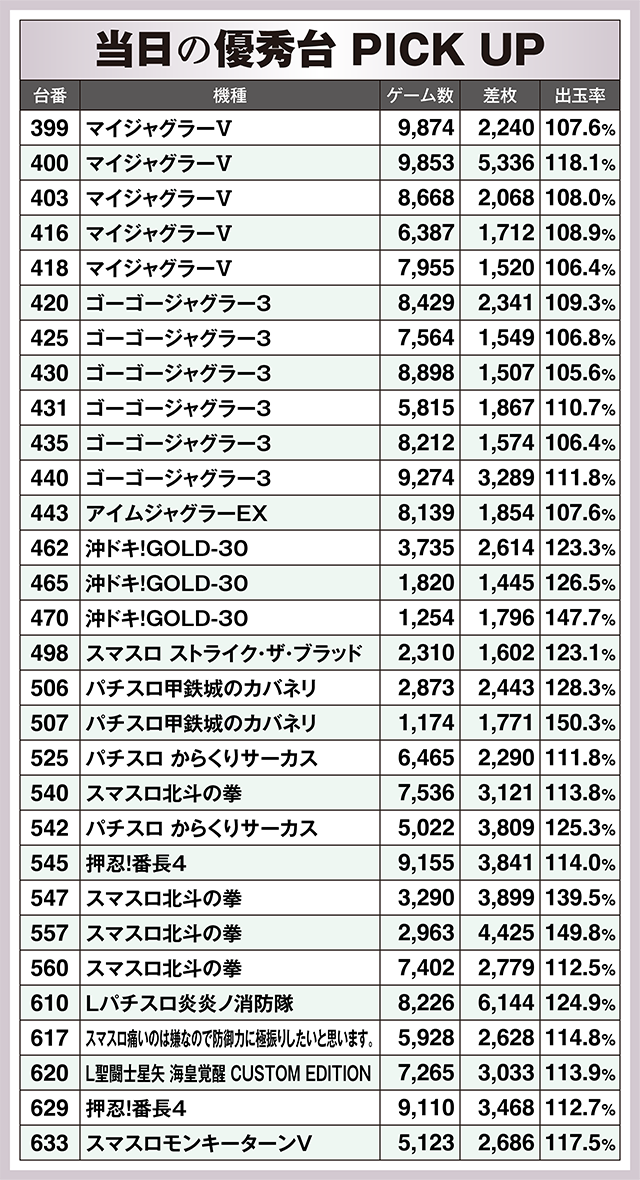 どの台も差枚は3,800pt超と、プレイヤーの活躍が光ってました☆