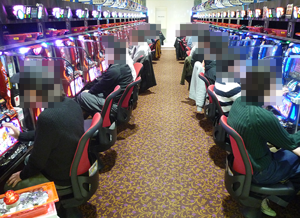 パチスロの「バジリスク~甲賀忍法帖~絆」と「ミリオンゴッド-神々の凱旋-」に機種の性能を最大限まで引き出しているといったプレイヤーが多く、シマ全体が明るいムードに包まれているイメージであった。