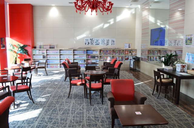 ホール内には多くの漫画や雑誌など取り揃えてた広々としたレストコーナーがあり、プレイヤーがリラックスできる空間がつくられていた。また、女性専用の休憩室も完備する充実の設備が整っていた。